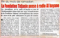 Fin du mois de ramadan : la Fondation Tidjanie pense à radio Al Bayane