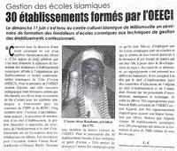 • Gestion des écoles islamiques : 30 établissements formés par l'OEECI