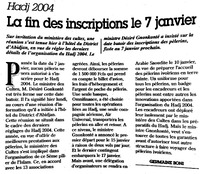 Hadj 2004 : la fin des inscriptions le 7 janvier