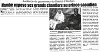 Audience du gouverneur du District d'Abidjan : Mambé expose ses grands chantiers au prince saoudien