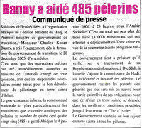 • Banny a aidé 485 pèlerins : communiqué de presse