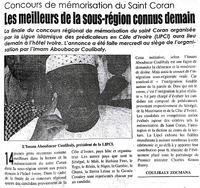Concours de mémorisation du Saint Coran : les meilleurs de la sous-région connus demain