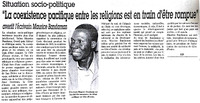 Situation socio-politique : "La coexistence pacifique entre les religions est en train d'être rompue" avertit l'écrivain Maurice Bandaman