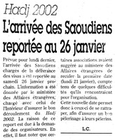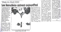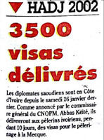 Visas du Hadj 2002 : les Saoudiens arrivent aujourd'hui