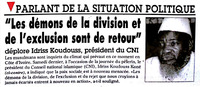 Idriss Koudouss (CNI) à propos de la situation socio-politique : "Les démons de la division et de l'exclusion sont de retour"