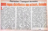 Ramadan / Transport terrestre : 3000 repas distribuées aux acteurs, demain