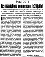 Hadj 2011 : les inscriptions commencent le 25 juillet