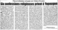 Réconciliation et paix en Côte d'Ivoire : six confessions religieuses prient à Yopougon