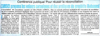 Conférence publique / Pour réussir la réconciliation : l'AMSCI propose les valeurs coraniques et des pratiques du prophète Mohamed