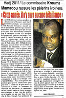 Hadj 2011 / Le commissaire Krouma Mamadou rassure les pèlerins ivoiriens : "Cette année, il n'y aura aucune défaillance"