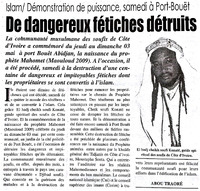Islam / Démonstration de puissance, samedi à Port-Bouët : de dangereux fétiches détruits