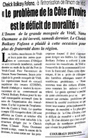 Cheick Boikary Fofana, à l'intronisation de l'imam de Vridi : "Le problème de la Côte d'Ivoire est le déficit de moralité"