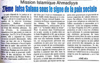 Mission Islamique Ahmadiyya : 27ème Jalsa Salana sous le signe de la paix sociale