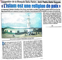Inauguration de la Mosquée Baïtul Rahim / Amir Pasha Abdul Quyyom : "L'islam est une religion de paix"
