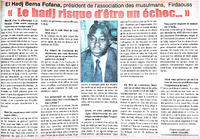 El Hadj Bema Fofana, président de l'association des musulmans, Firdaouss : "Le hadj risque d'être un échec..."