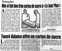 Ramadan : Mtn-ci fait don d'un carton de sucre à "Le Jour Plus" / Touré Adama offre un carton de sucre