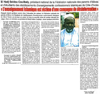 El Hadj Seidou Coulibaly, président national de la Fédération nationale des parents d'élèves et d'étudiants des établissements d'enseignements confessionnels islamiques de Côte d'Ivoire...