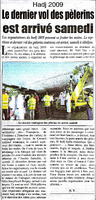 Hadj 2009 : le dernier vol des pèlerins est arrivé samedi
