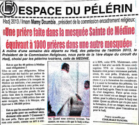 Hadj 2013 / Imam Mamy Doumbia, président de la commission encadrement religieux : "Une prière faite dans la mosquée Sainte de Médine équivaut à 1000 prières dans une autre mosquée"