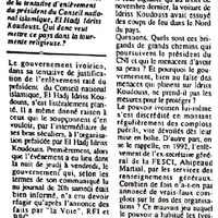 À propos des accusations d'intégrisme musulman en Côte d'Ivoire. M. Laurent Gbagbo (Secrétaire général du FPI) : "La grogne des citoyens abandonnés au Nord n'est pas de l'intégrisme musulman" -