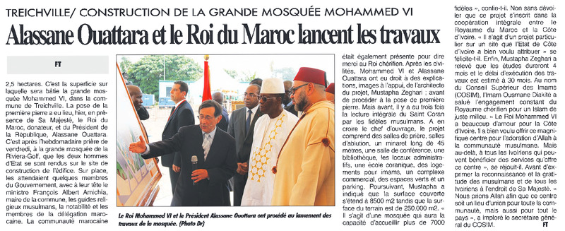 Treichville. Construction de la grande mosquée Mohammed VI : Alassane Ouattara et le Roi du Maroc lancent les travaux