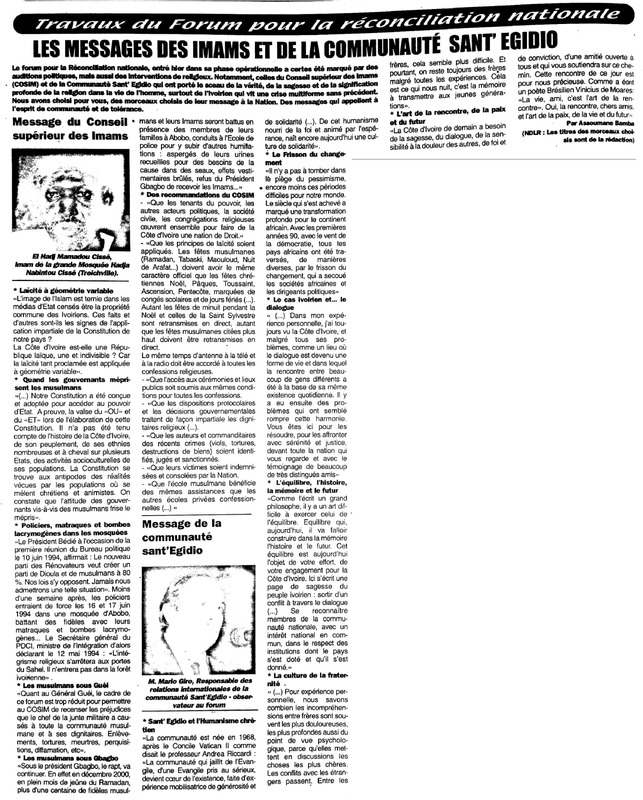 Travaux du Forum pour la réconciliation nationale : les messages des imams et de la communauté Sant'Egidio