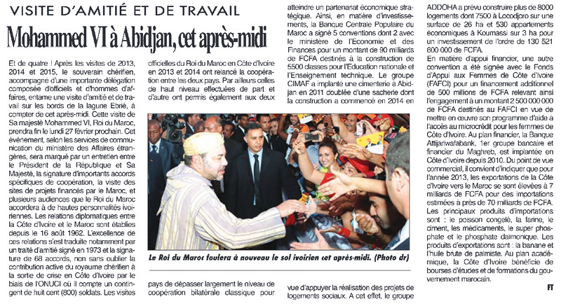 Visite d'amitié et de travail : Mohammed VI à Abidjan, cet après-midi