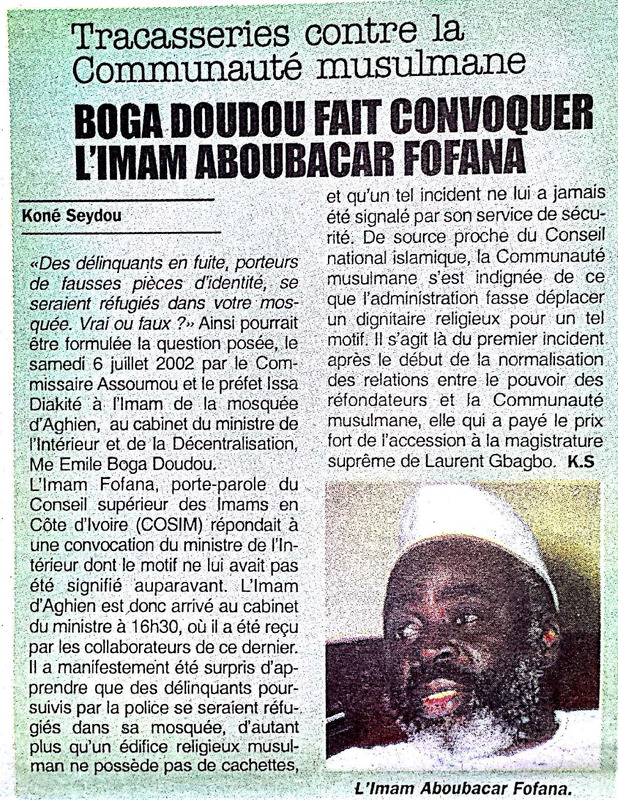 Tracasseries contre la Communauté musulmane : Boga Doudou fait convoquer l'imam Aboubacar Fofana