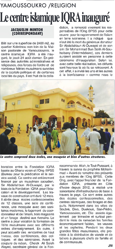 Yamoussoukro. Religion : le centre islamique IQRA inauguré
