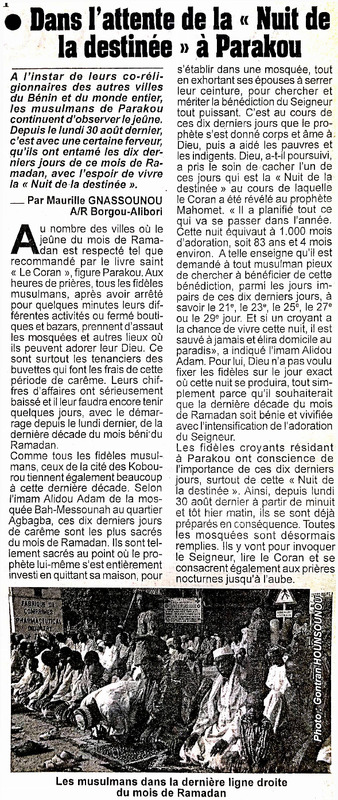 Mois de Ramadan : dans l'attente de la "Nuit de la destinée" à Parakou