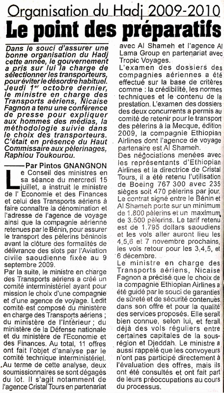 Organisation du Hadj 2009-2010 : le point des préparatifs