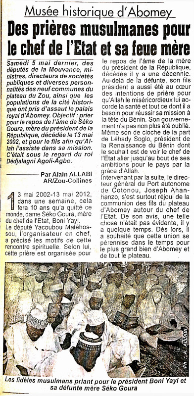 Musée historique d'Abomey : des prières musulmanes pour le chef de l'Etat et sa feue mère