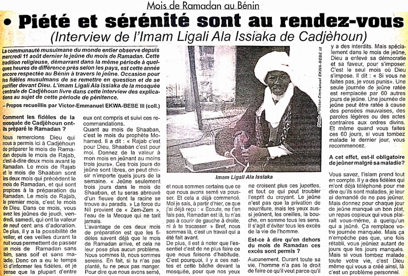 Mois de Ramadan au Bénin : piété et sérénité sont au rendez-vous (Interview de l'Imam Ligali Ala Issiaka de Cadjèhoun)