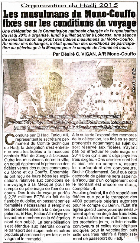 Organisation du Hadj 2015 : les musulmans du Mono-Couffo fixés sur les conditions du voyage