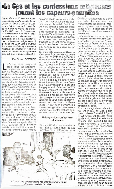 Négociations pour une issue à la fronde sociale : le Ces et les confessions religieuses jouent les sapeurs-pompiers