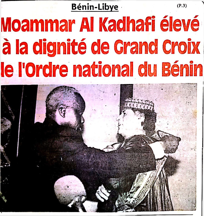 Moammar Al-Kadhafi élevé à la dignité de Grand croix de l'ordre national du Bénin