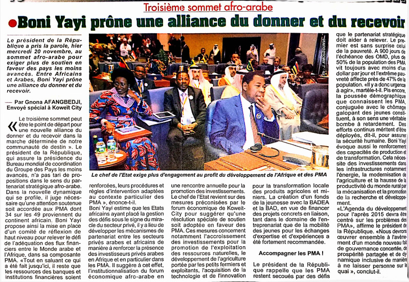 Troisième sommet afro-arabe : Boni Yayi prône une alliance du donner et du recevoir