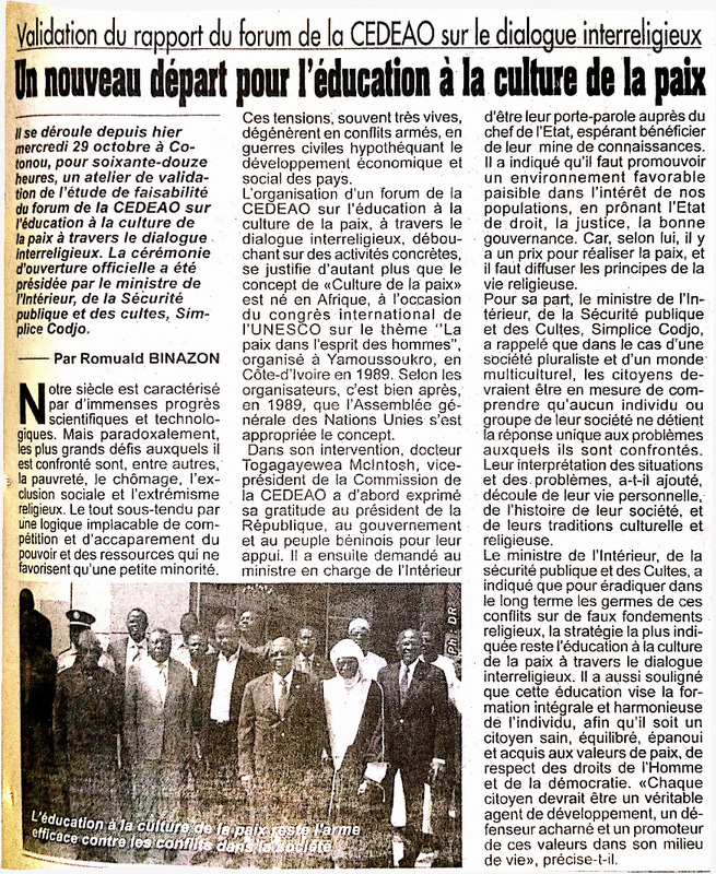 Validation du rapport du forum de la CEDEAO sur le dialogue interreligieux : un nouveau départ pour l'éducation à la culture de la paix