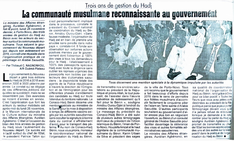 Trois ans de gestion du Hadj : la communauté musulmane reconnaissante au gouvernement