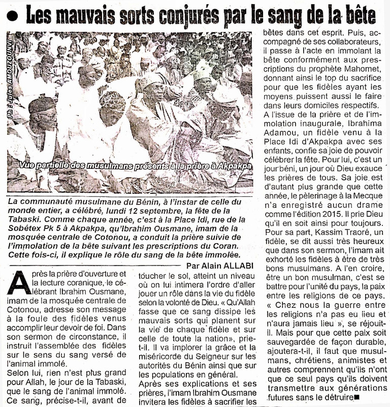 Tabaski 2016 : les musulmans de Bohicon ont sacrifié à la tradition