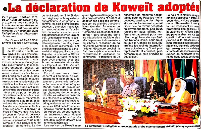 Troisième sommet afro-arabe : la déclaration de Koweït adoptée