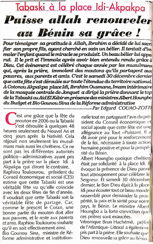 Tabaski à la place Idi-Akpakpa : puisse allah renouveler au Bénin sa grâce !