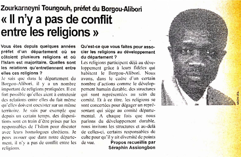 Zourkarneyni Toungouh, préfet du Borgou-Alibori : "Il n'y a pas de conflit entre les religions"