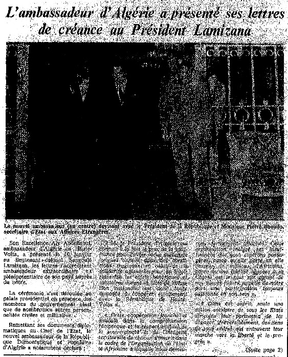 L'ambassadeur d'Algérie a présenté ses lettres de créance au Président Lamizana