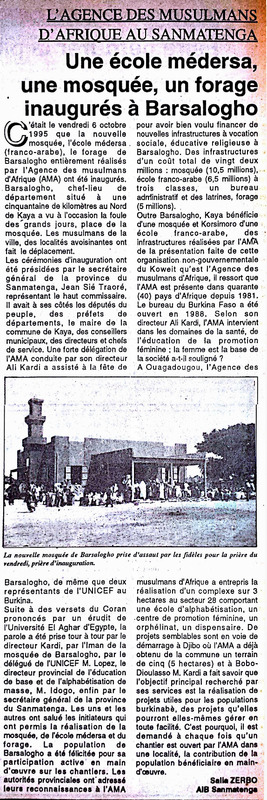 L'Agence des musulmans d'Afrique au Sanmatenga : une école médersa, une mosquée, un forage inaugurés à Barsalogho