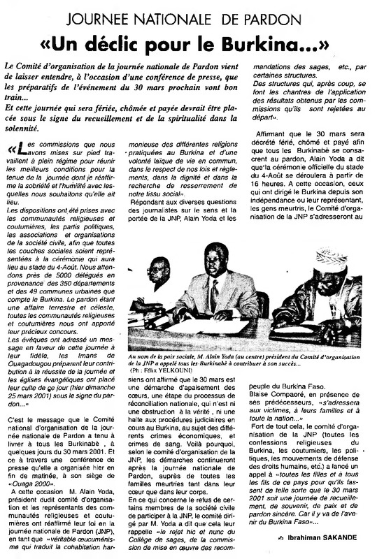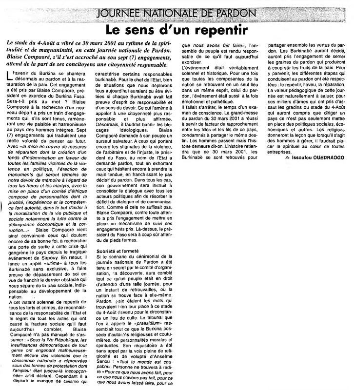 Journée nationale de Pardon : le président du praesidium Mgr Anselme SANON