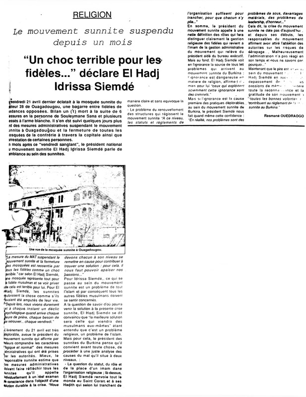 Le mouvement sunnite suspendu depuis un mois : "Un choc terrible pour les fidèles…" déclare El Hadj Idrissa Siemdé