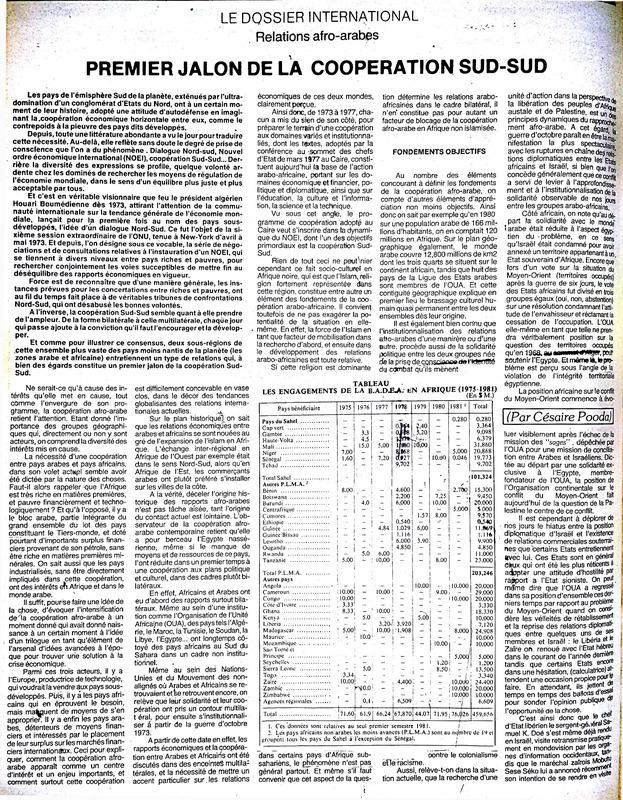 Le dossier international. Relations afro-arabes : premier jalon de la coopération Sud-Sud