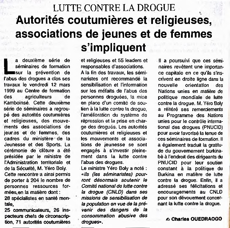 Lutte contre la drogue : autorités coutumières et religieuses, associations de jeunes et de femmes s'impliquent