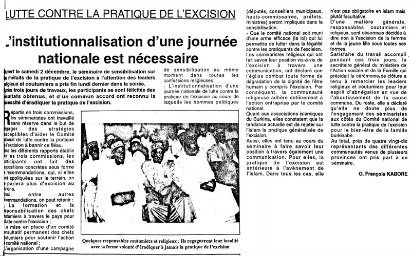 Lutte contre la pratique de l'excision : un bilan positif au Sanmatenga